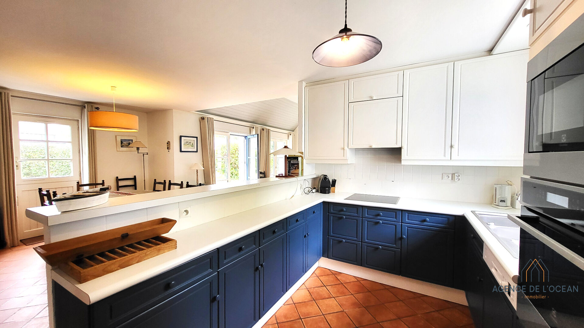 L'intérieur de la maison se distingue par ses volumes généreux et sa belle hauteur sous plafond de 3,20 m dans la pièce de vie, créant ainsi un espace ouvert et aéré. La pièce principale est un véritable coeur de la maison, avec une cuisine ouverte moderne et conviviale, un coin repas et un séjour lumineux. Les larges fenêtres permettent de profiter de la lumière naturelle tout au long de la journée, créant une atmosphère chaleureuse et accueillante.
